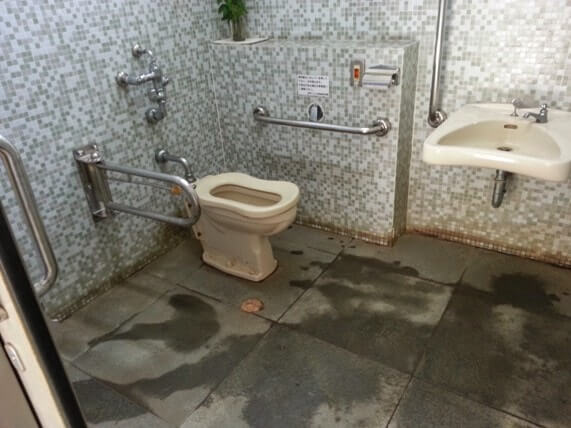障害者用トイレ、広々駐車場。車椅子の高齢者、介護施設の外出にもおすすめ。